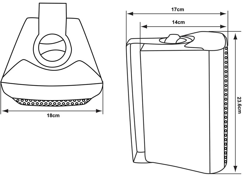 23.6(H) x 18(B) x 14(T)cm