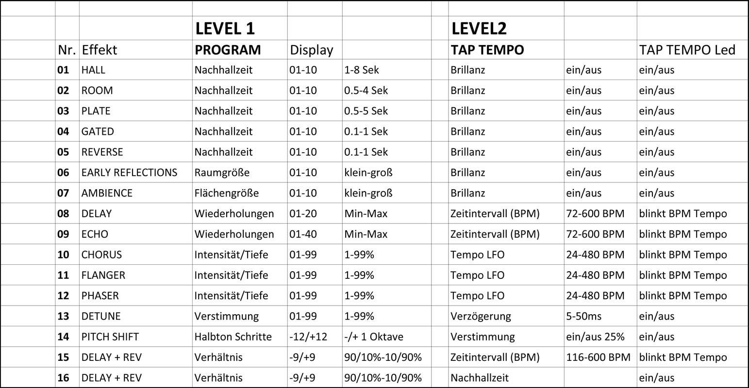 • 24-Bit DSP Effekt-Prozessor für 16 anpassbare Effekte
