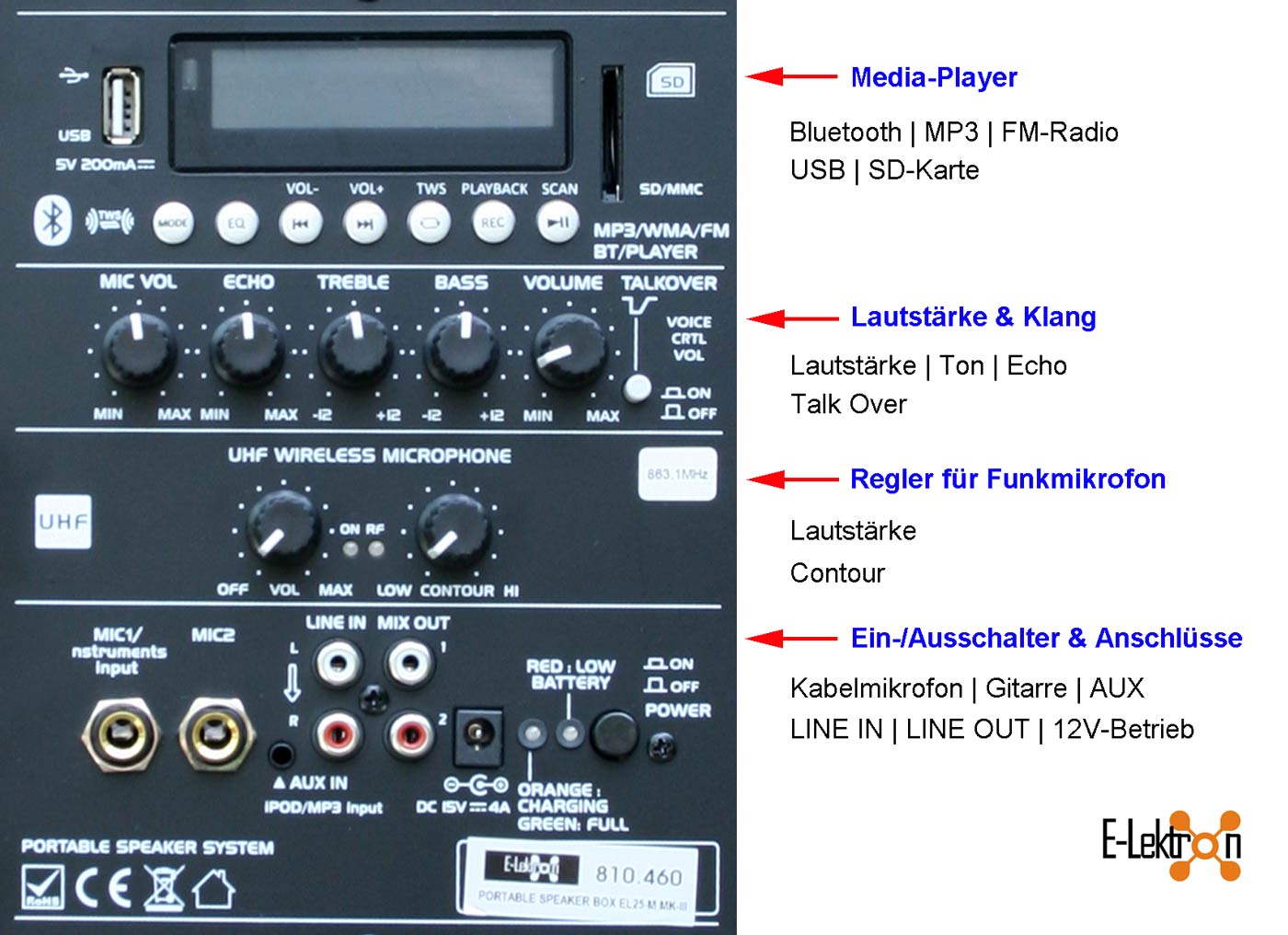 E-Lektron EL25-M MK-III 500W - Media-Player, Akku, Funkmikrofon, Bluetooth & FM-Radio